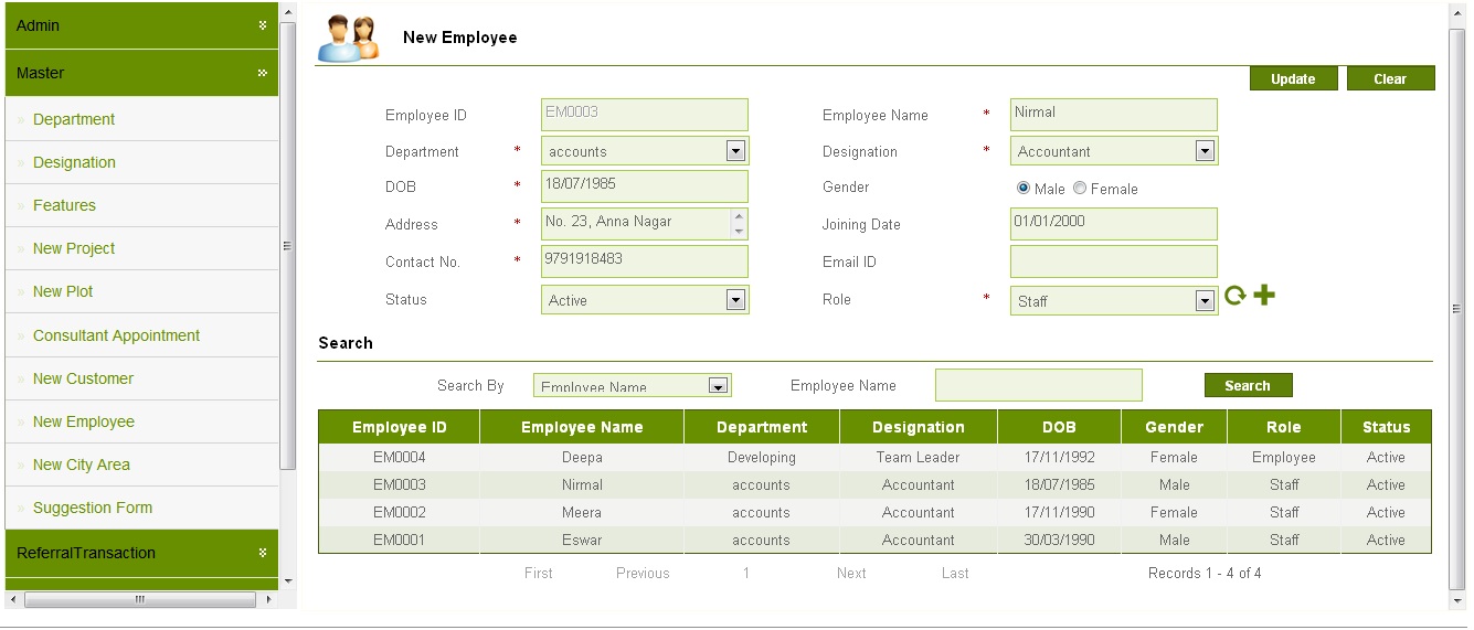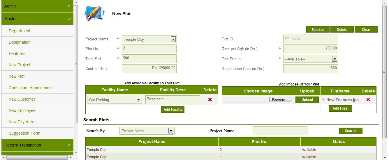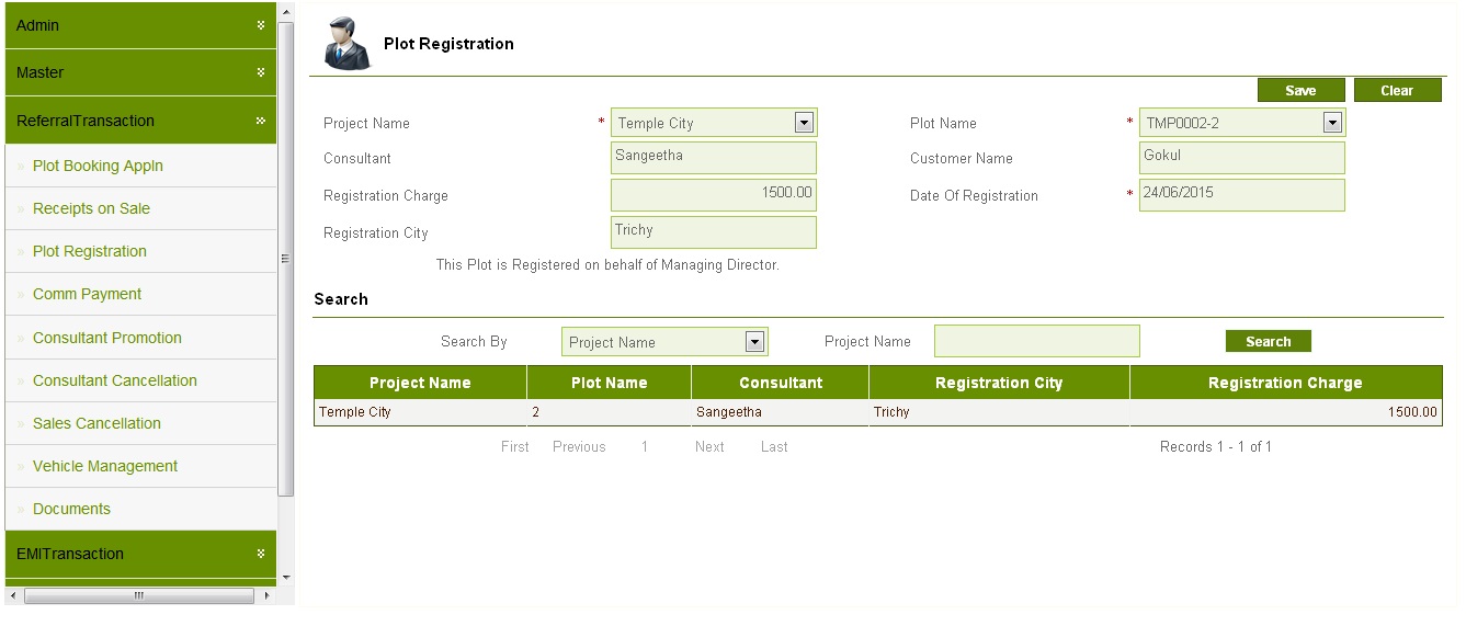 Consultant Appointment | The management can add consultants with defined designations who will represent the company to sell the plot to the customers. |