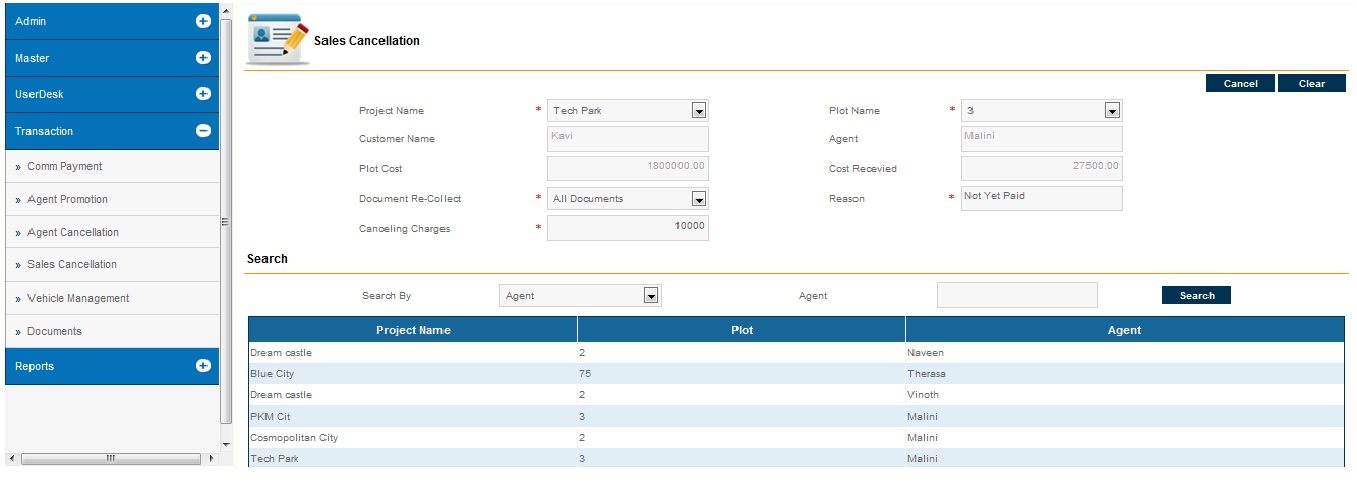 Sales Cancellation | In case there is any cancellation of sale in between before registration, the same can be done here |