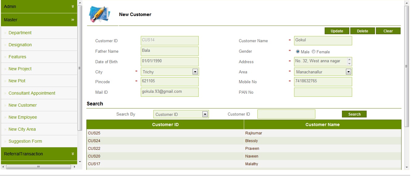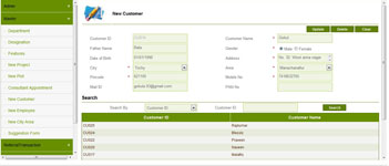 New Customer | The management can add customers to whom the plots will be sold. Basic details of the customer is captured |